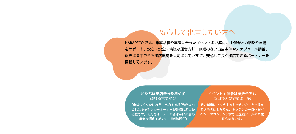 日常の運営に加え、改善や効率化まで視野に入れたプランです。定期的なサポートにより、悩みを一人で抱え込まず、次の一手を考えられる環境を整えます。 ベーシックプランの内容を土台とし、はらぺこラボが関わる各種イベントへの優先斡旋を行うことで、安定した出店に加え、新たな売上機会と認知拡大を後押しします。 さらに、出店時に撮影した写真を活用した自社SNSでの広報支援により、出店当日だけで終わらない集客と継続的な発信につなげます。 安定しながら、着実に前へ。運営の質を高め、一歩ずつ成長していきたい方に最適なプランです。